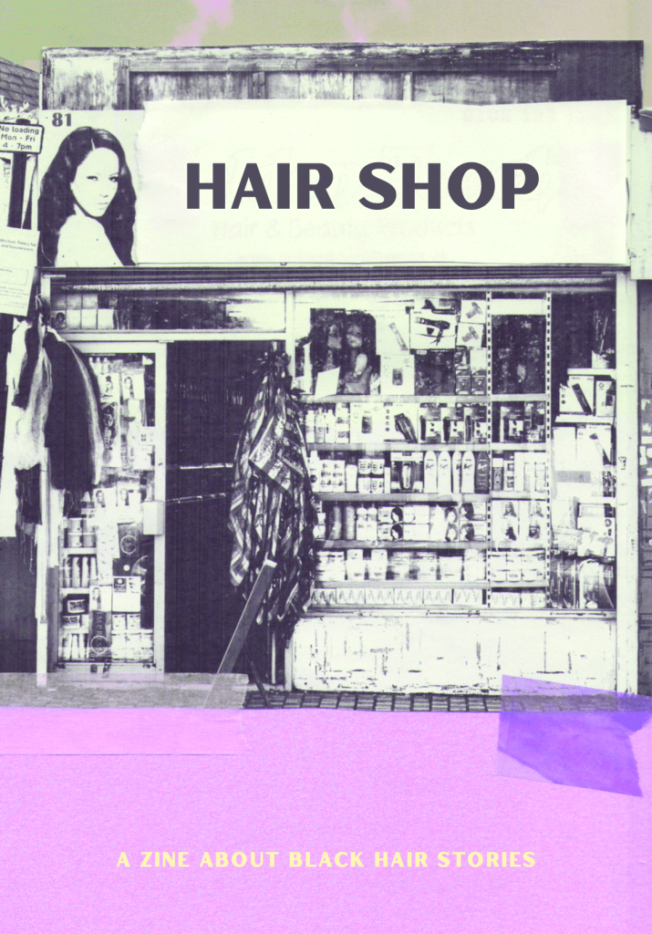 The Hair Shop zine features the words (and song choices) of Charnae, Ruth, Ebuni, Cyndi and Darkwah.