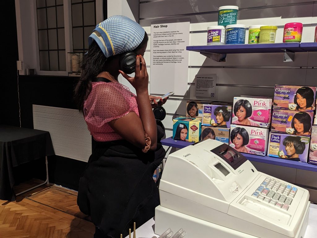 My work featured in an interactive barbershop in Room To Breathe at the Migration Museum, 2018-21.